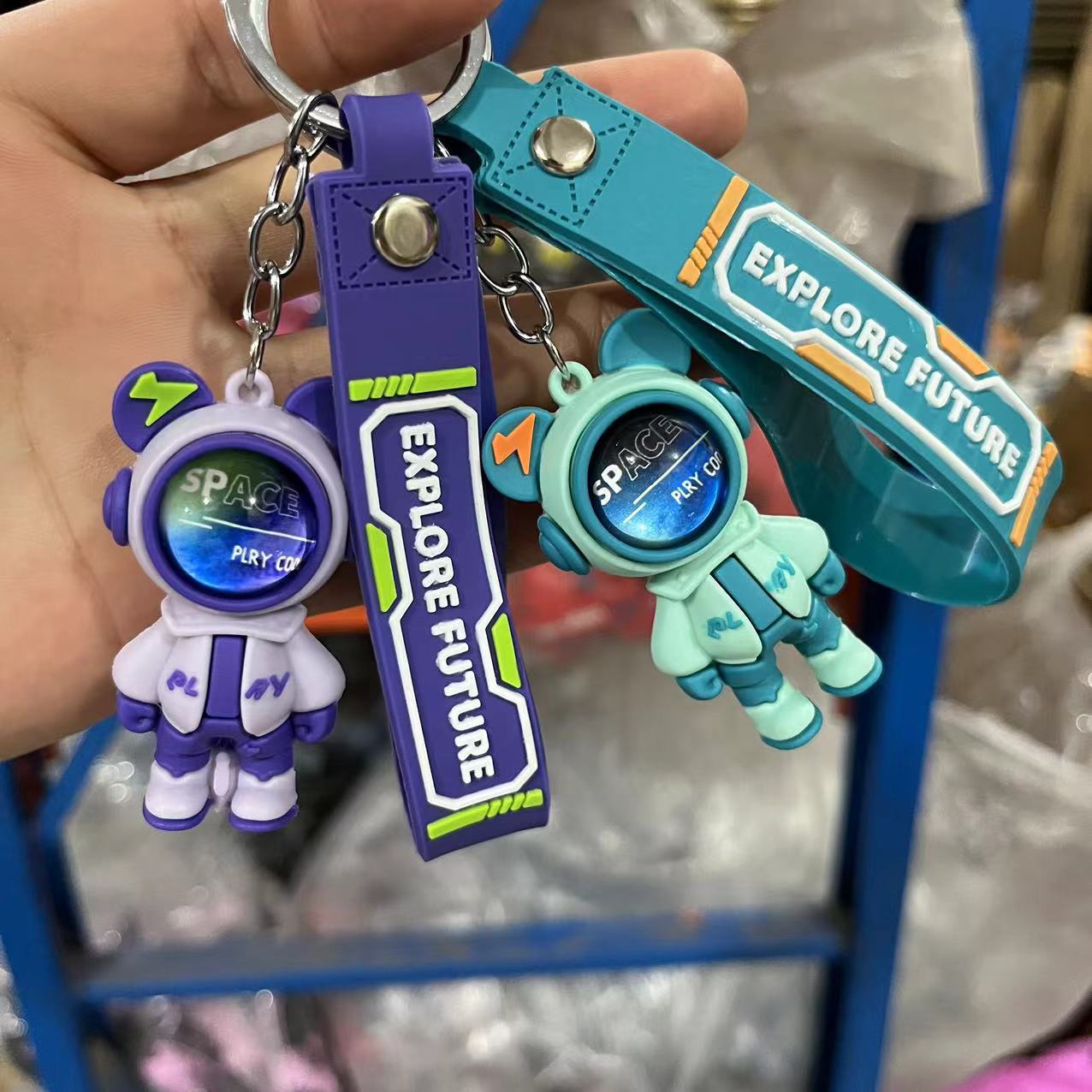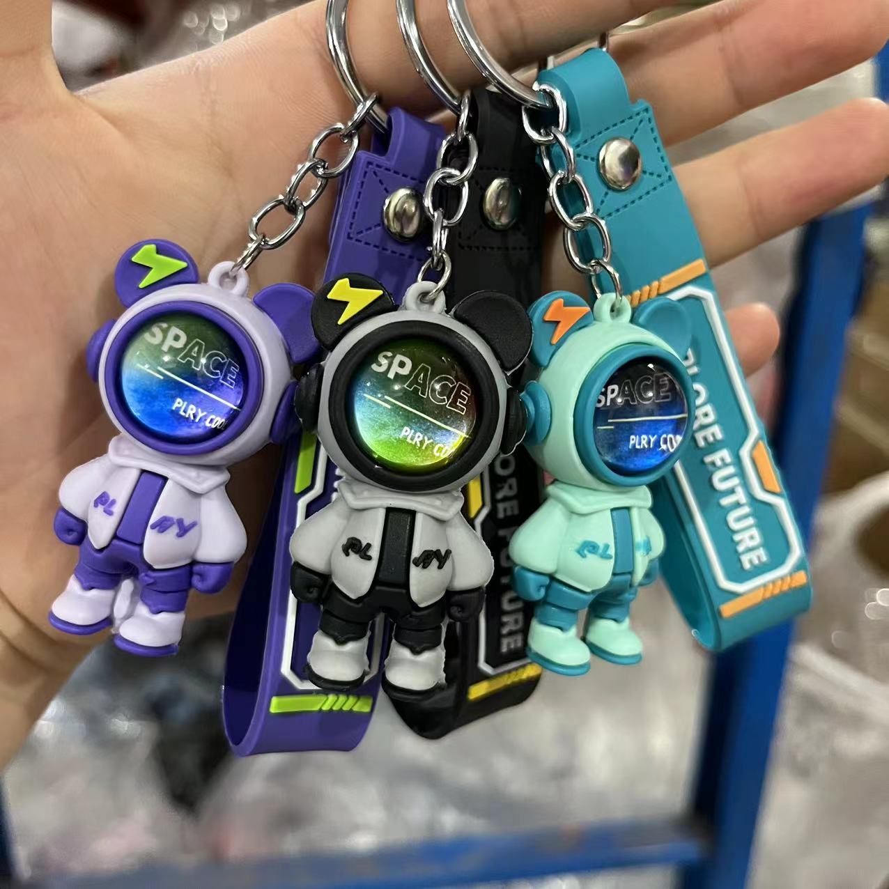 Tide Cool Flash Electric Bear Keychain Cartoon Cool Star Bear Pendant Bag Acces